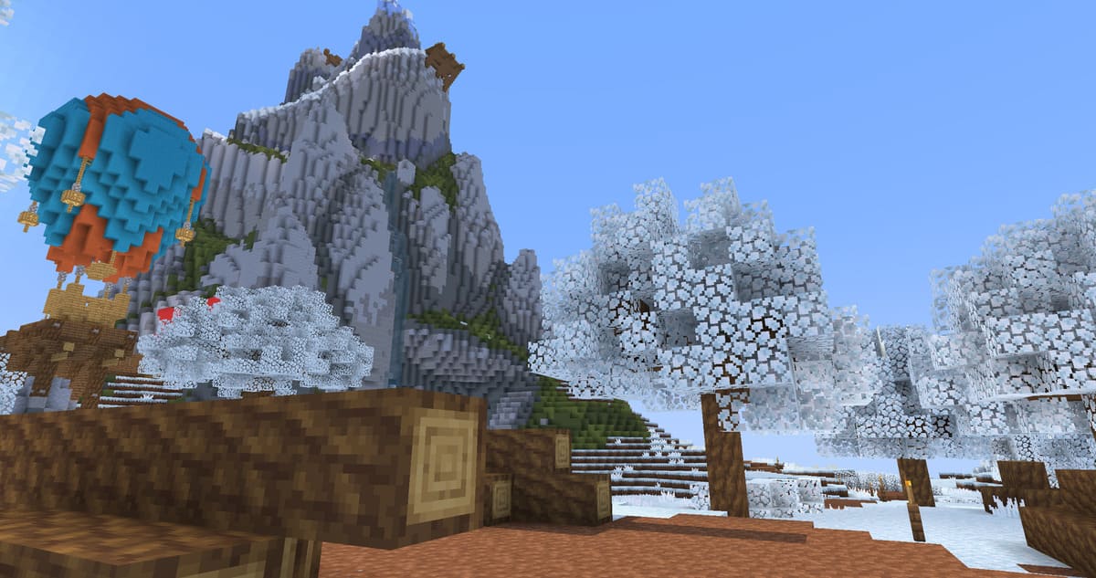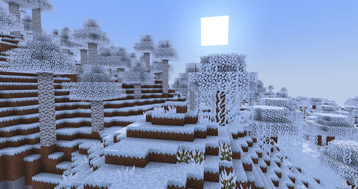Отличный вариант, если хочется сделать мир игры зимним как раз как в жизни, к тому же всё осталось почти что в дефолтном стиле, в игре с этими текстурами очень приятная новогодняя атмосфера получается.
